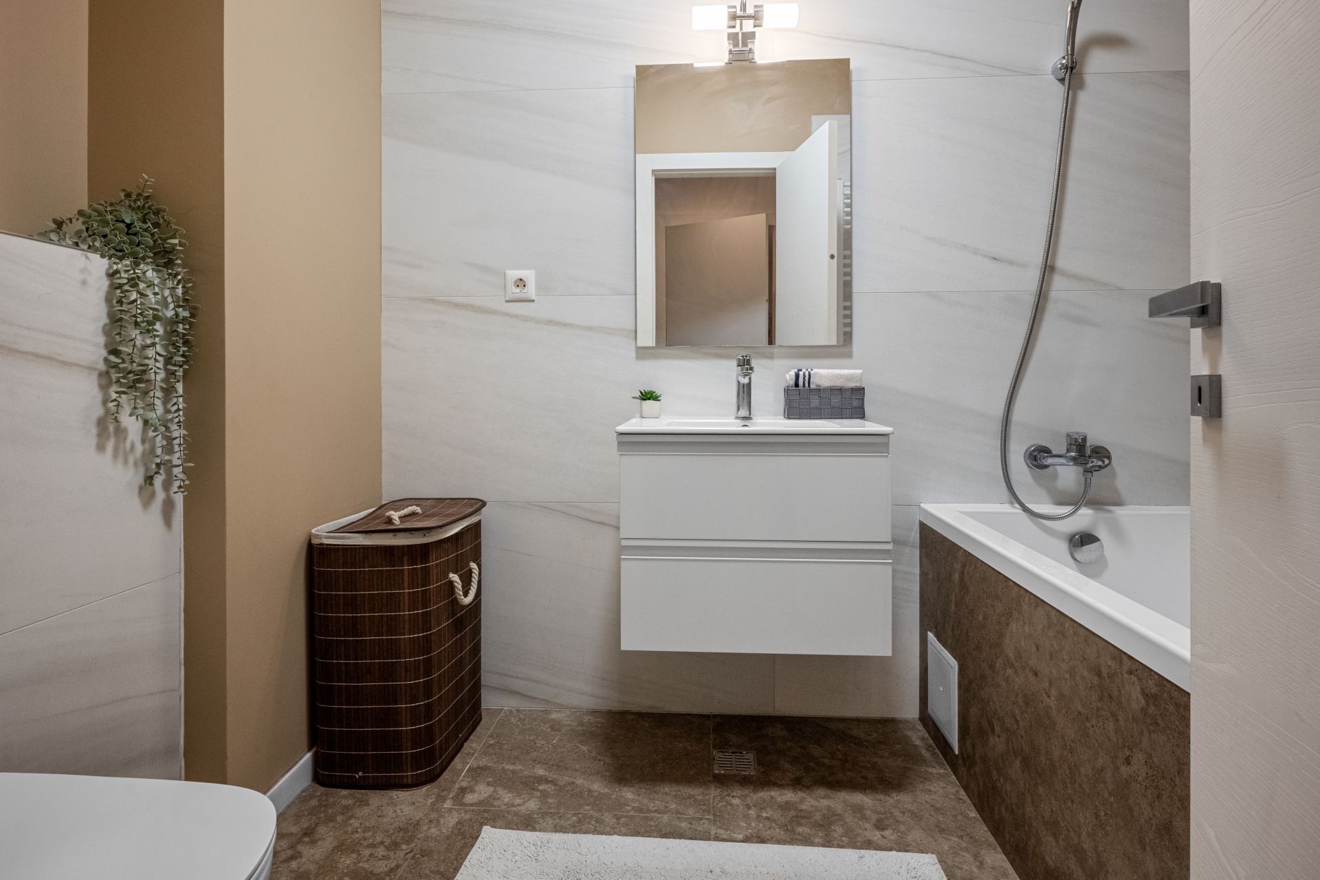 Situat la etajul 1 al imobilului, cu o suprafata utila totala de 68 mp, intr-o compartimentare ce include o superba terasa acoperita ce aduce farmec apartamentului, mobilat si utilat complet, apartamentul dispune de o amenajare moderna, cu accent pe elementele de decor si gandit pentru a fi practic si atragator.