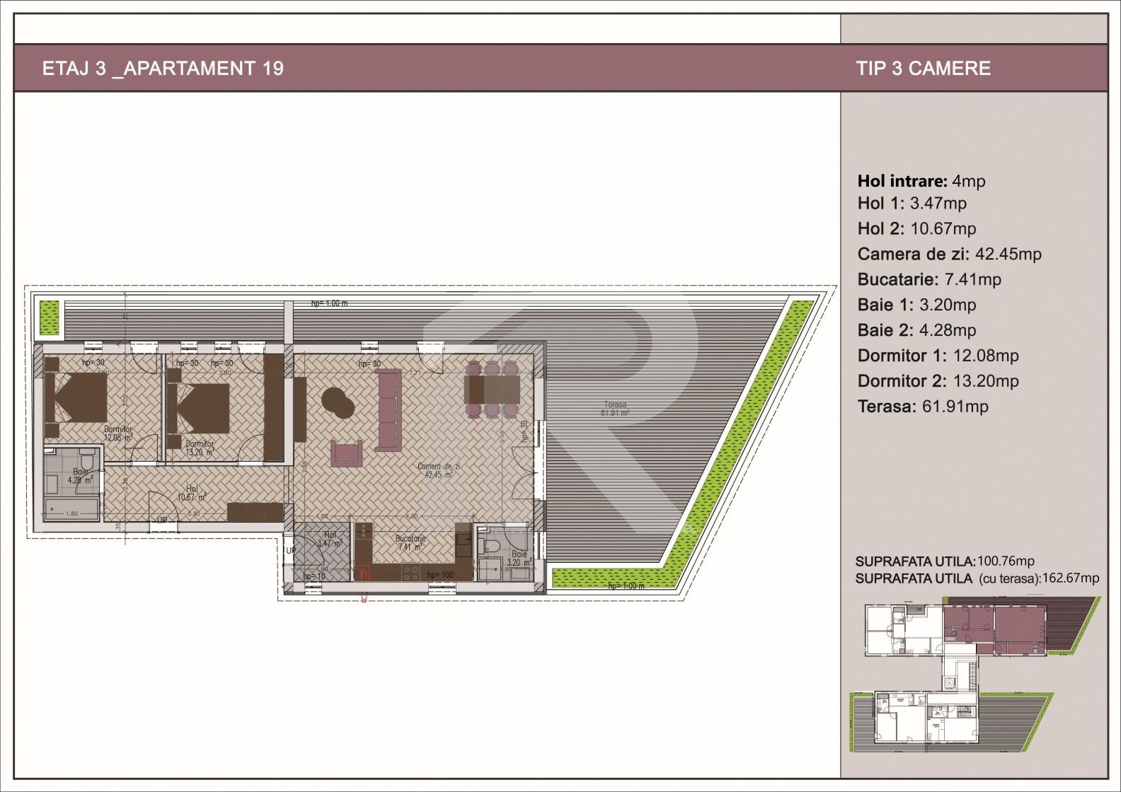 Vă prezentăm un apartament de 3 camere, nou cu finalizare 31.07.2025 în zona Nerva Traian, Sector 3, la doar 500m de stația de metrou Timpuri Noi. Acest apartament este ideal pentru cei care doresc să beneficieze de toate facilitățile urbane și de un acces rapid la transportul în comun. Detalii Apartament:- Localizare: Nerva Traian aproape de stația de metrou Timpuri Noi, oferind acces rapid și convenabil către toate zonele orașului.- Etaj: Apartamentul este situat la etajul 5 al unui bloc în construcție, cu finalizare în 2025.- Regim de înălțime: Demisol + Parter + 6 etaje .Nu ratați ocazia de a achiziționa acest apartament confortabil și bine poziționat! Contactați-ne pentru mai multe detalii și pentru a programa o vizionare.Pozele / imaginile sunt schitele apartamentelor cu 3 camere disponibile in acest bloc, in prima poza este apartamentul 24 , apartament descris in anunt , pentru restul apartamentelor se aplica alt pret in functie de suprafata utila , mai multe relatii la tefon !!!