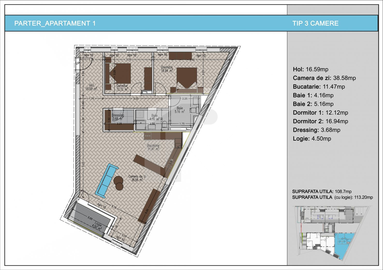 Suprafata totala: 101mp utili + 62mp terasa = peste 163mp spatiu total